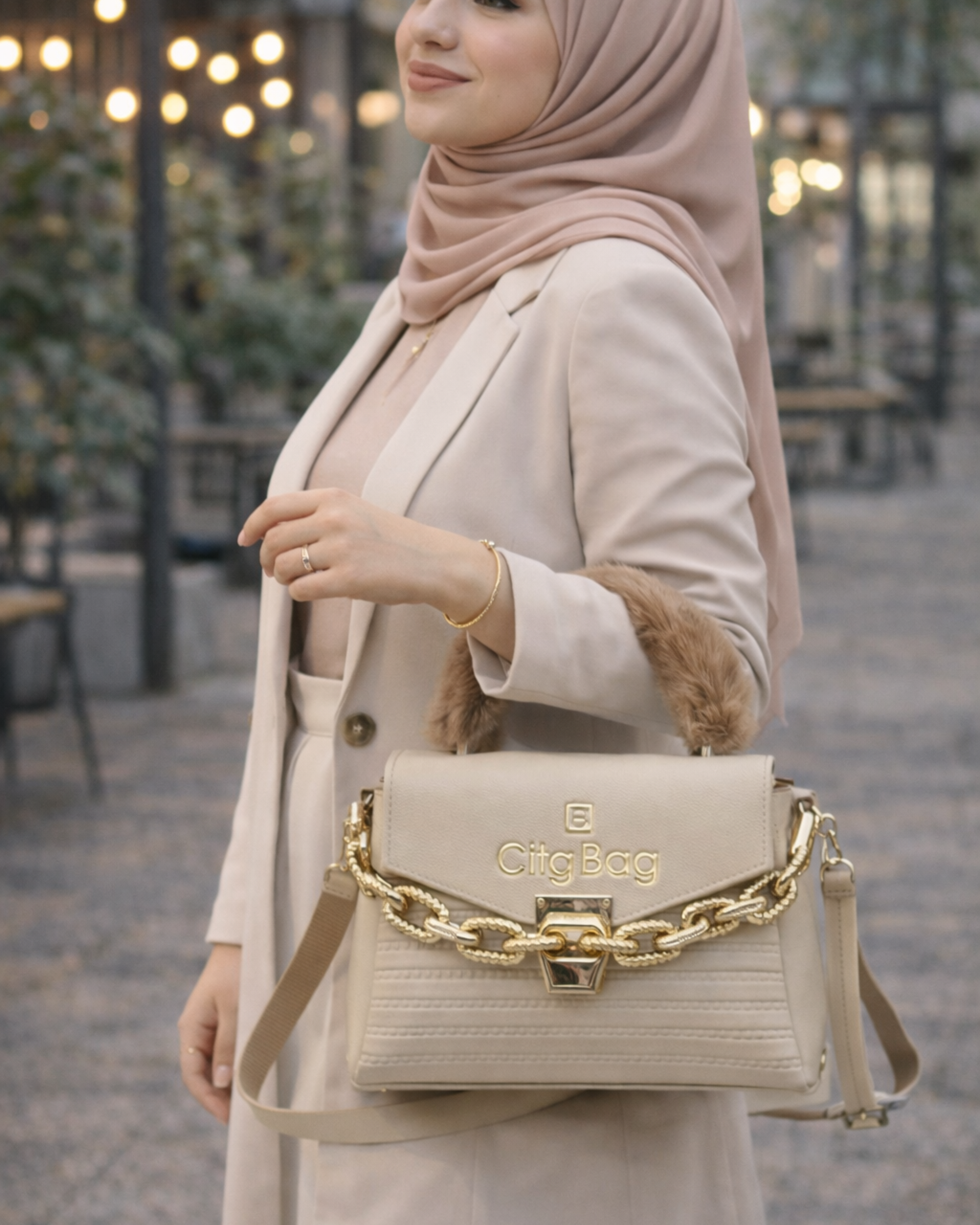 Elegant, bold, and irresistibly chic, Aleen Golden Luxe is crafted for women who love a statement piece with refined detailing. The soft ivory body paired with a rich faux-fur handle and striking gold chain accent creates a perfect blend of glamour and sophistication.