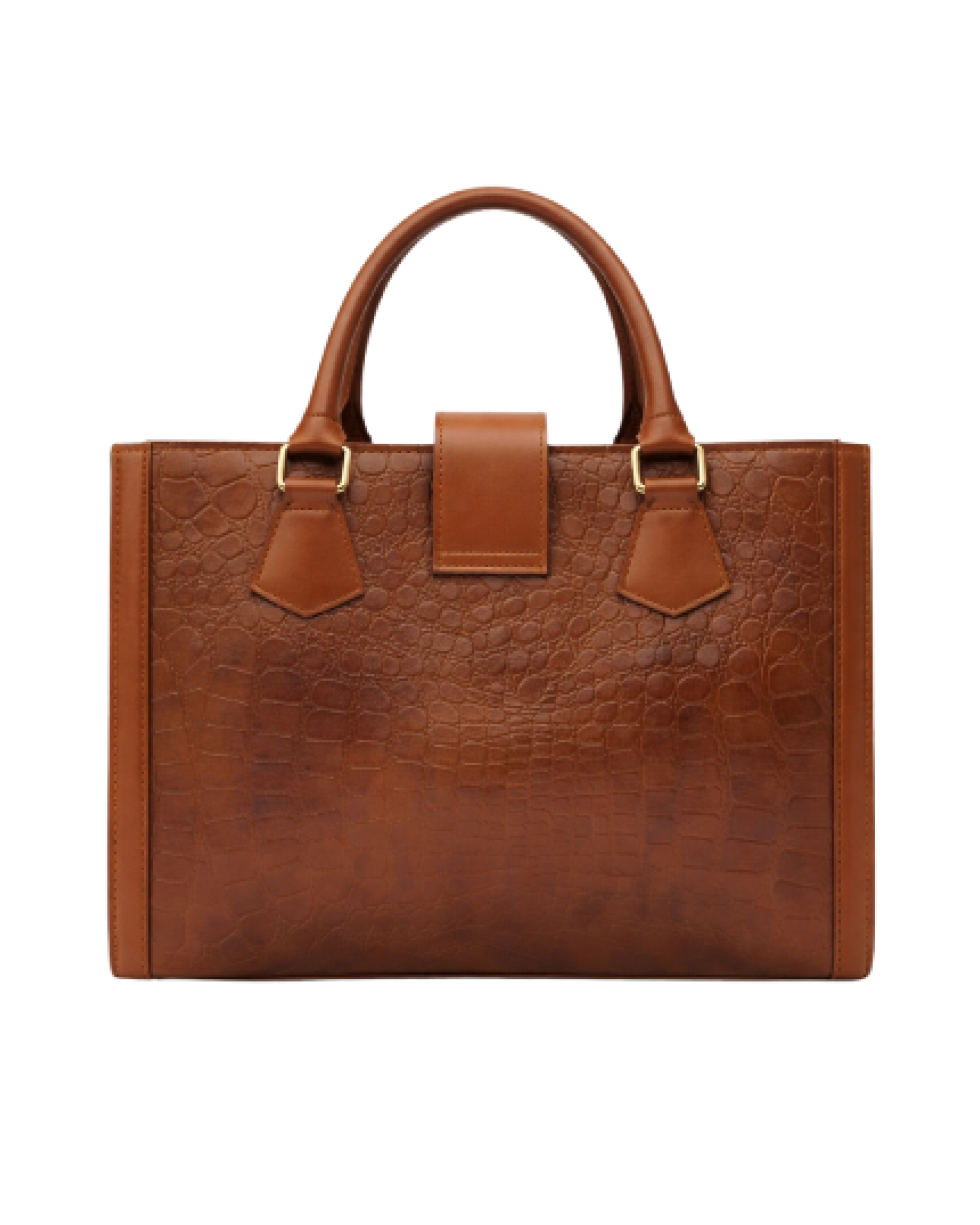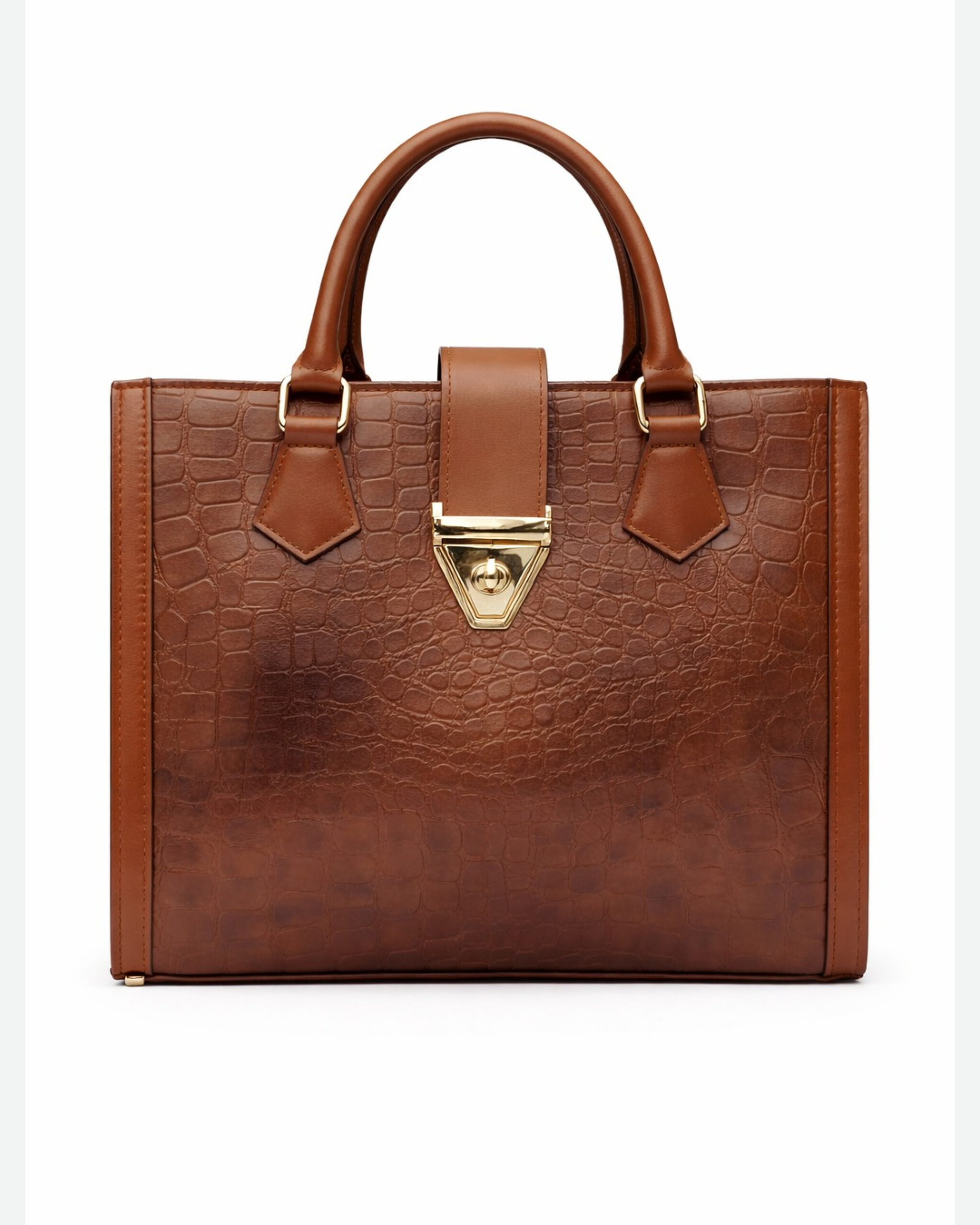 • Premium croc-embossed texture • Elegant gold lock detail • Strong top handles for a classy grip • Structured silhouette for a polished look • Spacious interior for everyday essentials